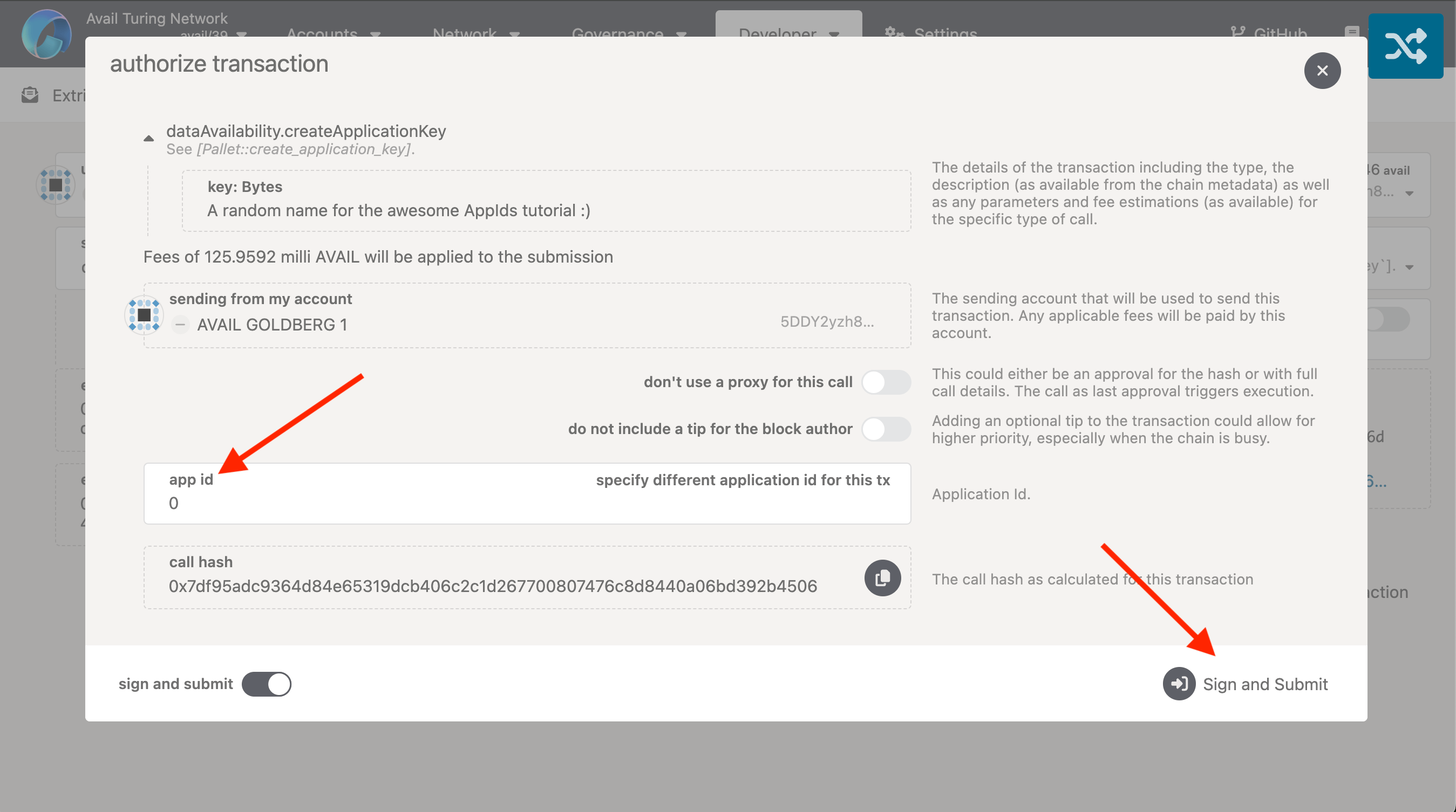 AppIDthat you want to submit the data to. Click onSign and Submitto authorize the transaction through your wallet.