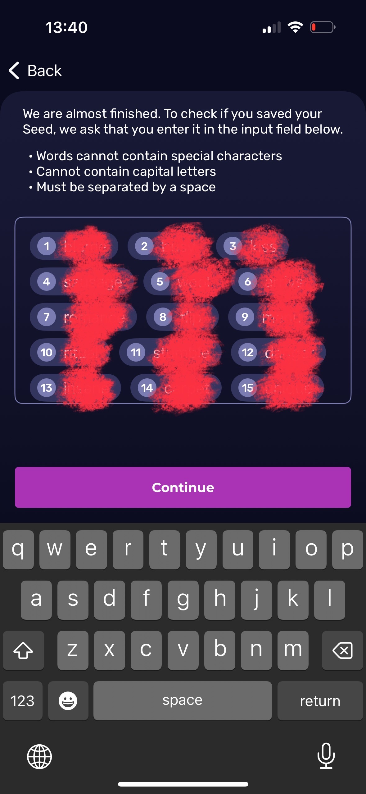 NEVER EVER share your seed phrase with anyone and keep it in a secure location. Anyone with access to your seed phrase can gain control of your account.
