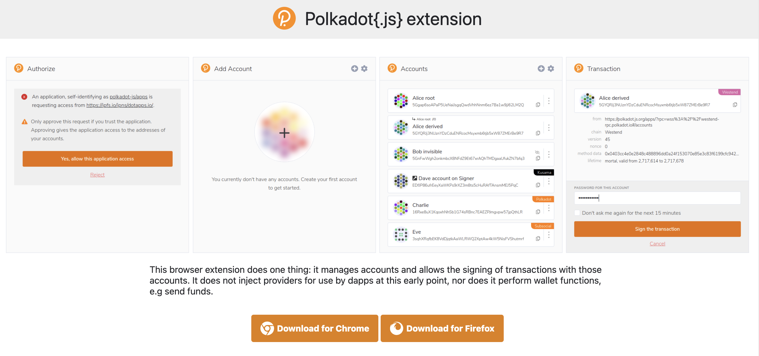 - Subwallet will prompt you to set up a password to secure access to the accounts in the wallet. Please note that this password DOES NOT control the actual on-chain account, and is merely used to open the wallet extension.