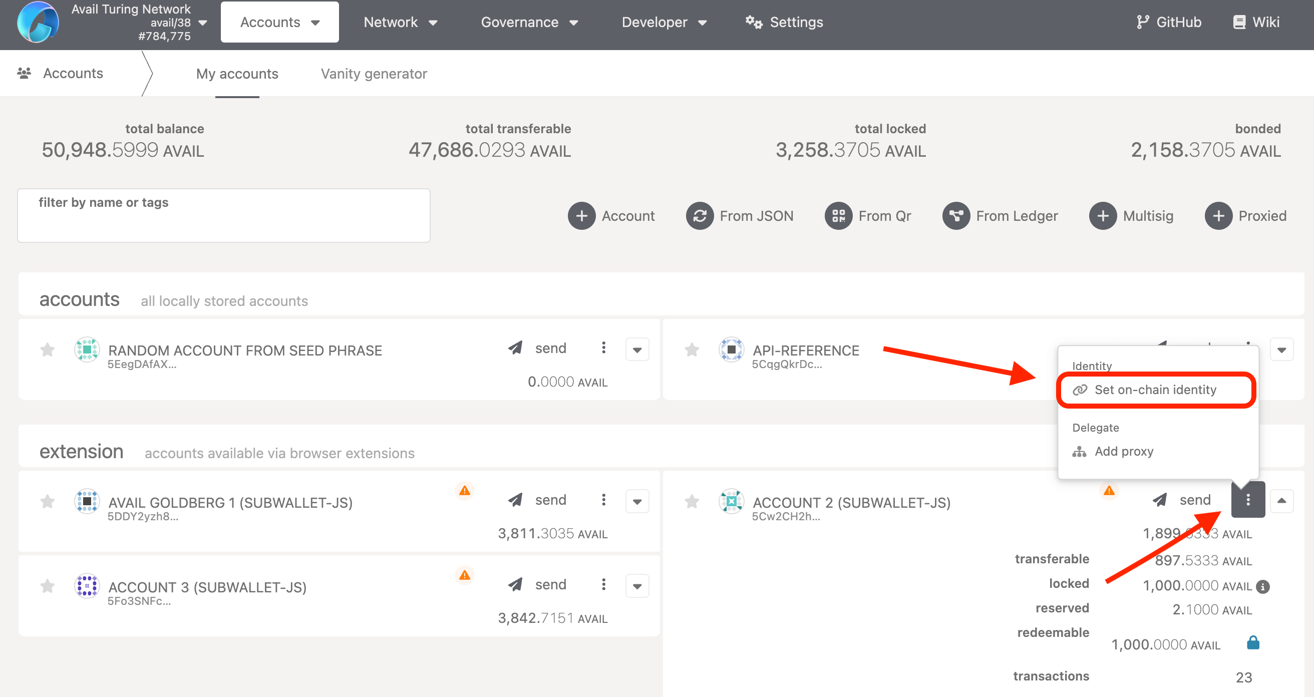 - Each account on Avail can create a main identity and up to 100 sub-identities.